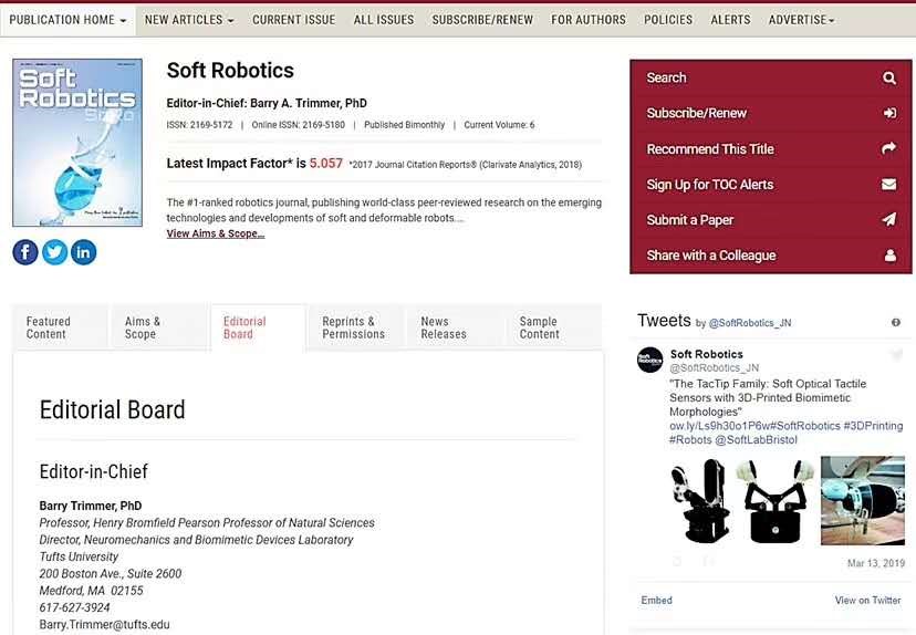 生物医学工程高精尖创新中心研究员担任机器人领域著名期刊Soft Robotics副主编生物医学工程高精尖创新中心客座研究员,国家优秀青年科学基金获得者文力接受了国际著名期刊 Soft Robotics《软体机器人》主编以及编委会的邀请,担任该杂志副主编。机器人是人工智能的重要载体,也是我国重要的发展方向,而软体机器人是机器人领域的学术前沿。Soft Robotics期刊列机器人领域影响因子第一位(JCR Q1区杂志),具有广泛的国际影响力。该期刊鼓励多学科交叉,涵盖了机械,材料,控制,力学,化学,生命科学...