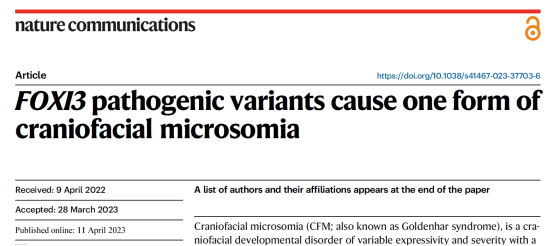 日前,北京亚洲成人在线一二三四五六区医学科学与工程学院张永彪团队,在颌面部疾病遗传病因方面取得重要进展,相关研究成果以Article长文形式,于2023年4月在线发表于《自然-通讯》杂志: “FOXI3 pathogenic variants cause one form of craniofacial microsomia”。该研究发现了半侧颜面短小畸形的新致病基因,并在体内外解析了突变导致颌面部畸形产生的原因。