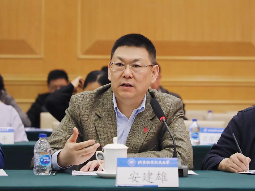 房建成对安建雄一行的到来表示欢迎,并指出北航一直以服务国家重大需求、做一流贡献为己任,在服务航空航天国家战略的同时,拓展医工交叉领域,服务健康中国国家战略需求。学校确立了“顶尖工科、一流理科、精品文科、优势医工”的学科建设方针,积极深化具有航空航天特色的医工交叉研究,并取得了一系列科研成果。他表示,北航已与航空工业共建航空总医院,双方将发挥特色优势,开展更高水平、更深层次的紧密合作,共建北航新医学,培养一流人才,开展产学研协同创新,推进重大科研成果转化应用,为建设航空强国、科技强国做出新的贡献。