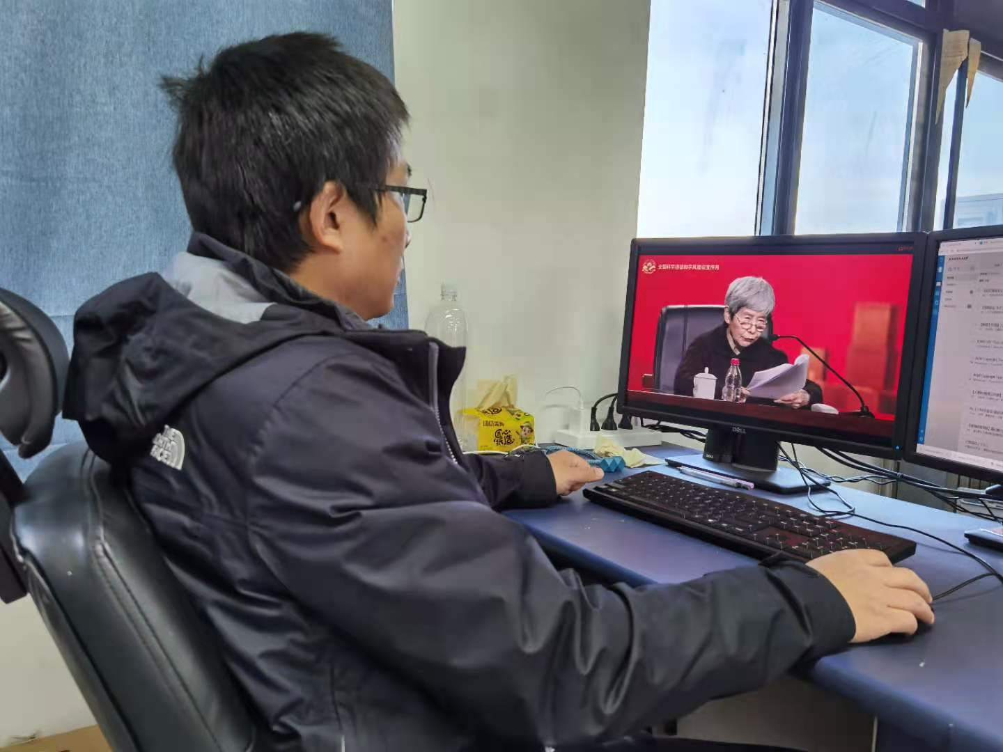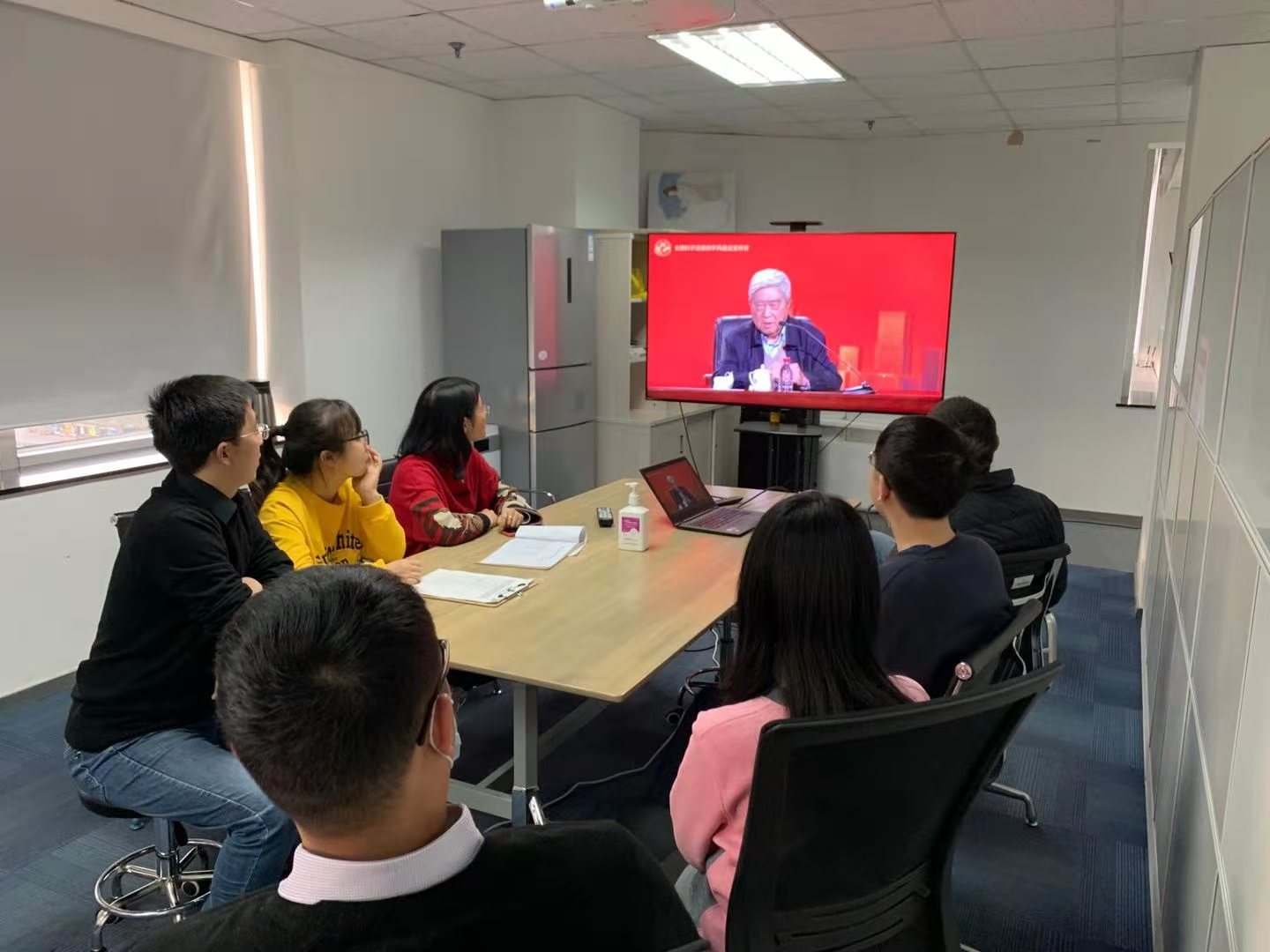 医学科学与工程学院教职工通过网络直播方式进行学习
