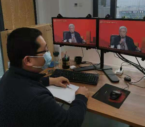 医工交叉创新研究院以及医学科学与工程学院全院教职工通过网络视频方式进行学习收看。