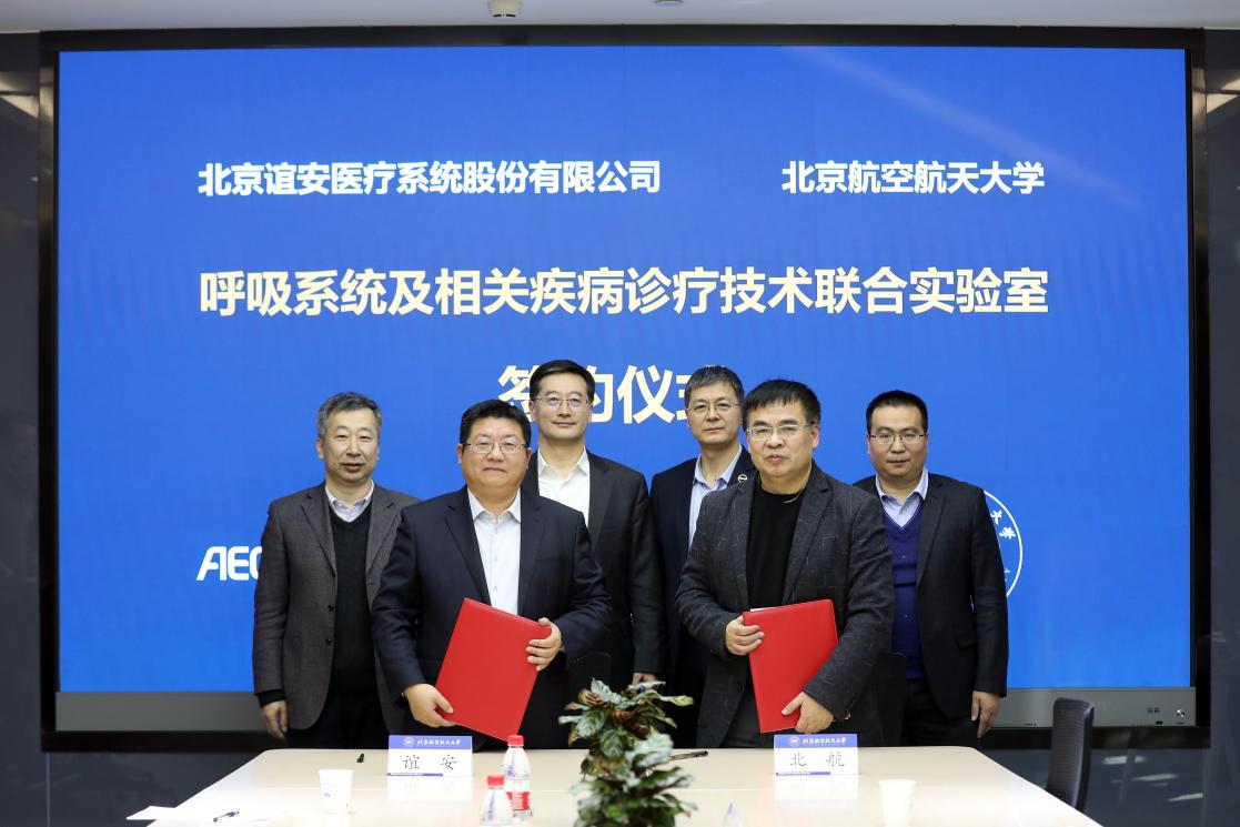 12月30日下午,北京亚洲成人在线一二三四五六区与北京谊安医疗系统股份有限公司共建“呼吸系统及相关疾病诊疗技术联合实验室”签约仪式成功举行。北京亚洲成人在线一二三四五六区副校长、中国工程院院士王云鹏教授,北航医学科学与工程学院兼医工交叉创新研究院院长樊瑜波教授,北京谊安公司董事长李长缨先生等参加签约仪式。签约仪式由北航医学科学与工程学院书记李德玉教授主持。