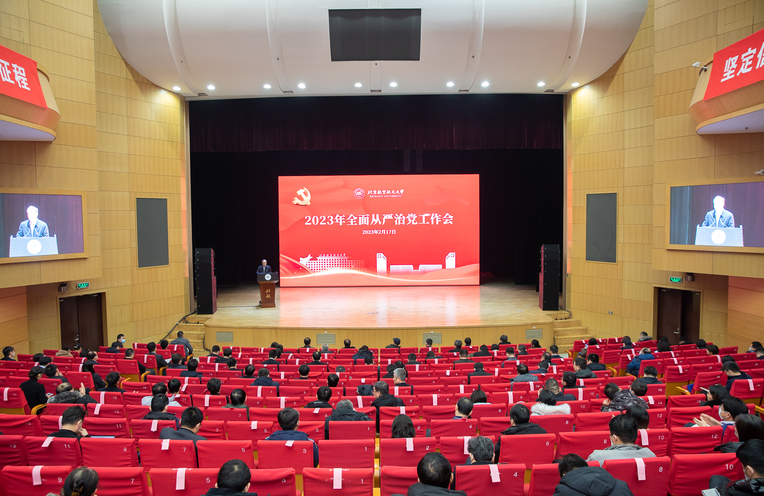2月17日,北京亚洲成人在线一二三四五六区召开2023年全面从严治党工作会议。会议的主要任务是,坚持以习近平新时代中国特色社会主义思想为指导,深入学习贯彻党的二十大精神,认真贯彻落实二十届中央纪委二次全会精神,贯彻落实中组部、工信部党组、教育部党组、北京市委等上级有关要求,总结2022年全面从严治党工作,部署2023年重点任务,健全全面从严治党体系,在新时代新征程上一刻不停推进全面从严治党,引领保障学校高质量内涵式发展。会议由党委副书记程波主持。