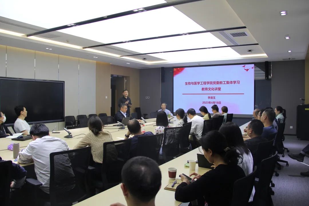 2023年4月18日,生物与医学工程学院党委结合学习贯彻习近平新时代中国特色社会主义思想主题教育,开展“名家论坛”、“教育文化讲堂”、“学术沙龙”特色活动,生物与医学工程学院、医学科学与工程学院党委书记李德玉教授做了题为“面向专业核心能力提升的医工融合课程群建设”的主题报告。会议由姚杰副院长主持,生物与医学工程学院、医学科学与工程学院教师参会。