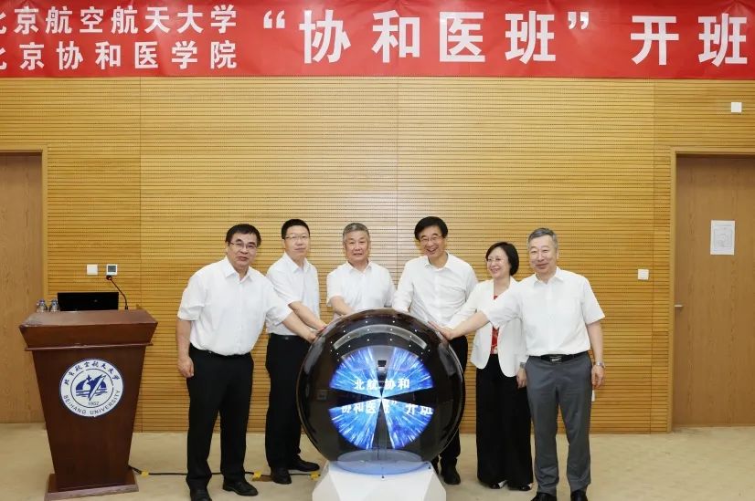 据悉,为深入贯彻落实健康中国战略,促进医学教育与多学科互补协同、融合创新,助力拔尖创新医学人才培养,2023年5月,北航和协和医学院就合作开展“医+X”、“X+医”的新医科和新工科建设、人才培养等相关事宜达成战略合作协议,依托北航医工学科群(生物与医学工程学院、医学科学与工程学院)成立“协和医班”,培养兼具多学科背景的复合型医学人才。北航“协和医班”由“医工交叉试验班”招生,每年从在校生中选拔30人左右,由双方共同制定培养方案、配备优质师资授课。目前首批30名进入“协和医班”的学生已顺利开课。