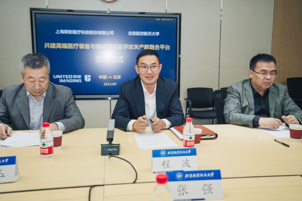 张强董事长表示,联影医疗一直坚持自主研发及创新性成果转化,加速推进精准诊疗与前瞻科研探索,拥有完全自主知识产权的130余款产品。他强调,北航医工学科群近年快速发展,在高端医疗装备与器械领域开展前沿引领性基础研究、核心关键技术突破及产业转化创新,取得令人瞩目的成就。双方联合共建高端医疗装备与器械国家医学攻关产教融合平台,共同开展以产业需求为导向的前沿科学研究、重大核心技术攻关和产品研制,对于实现高端医疗装备自主可控具有重要意义。